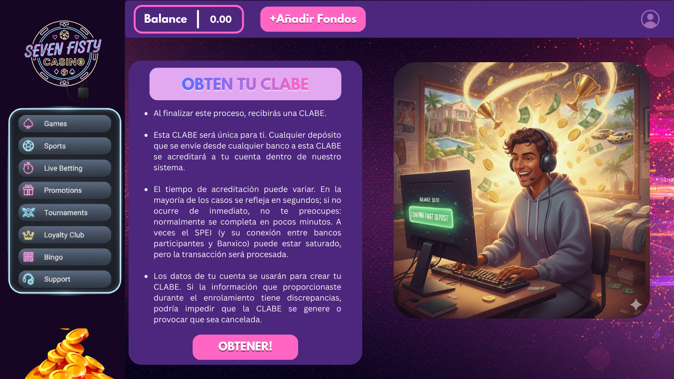 After calling our endpoint retrieve the CLABE from the payload and present it to the user, invite him to perform his first deposit, remember to clearly transmit to your user:
